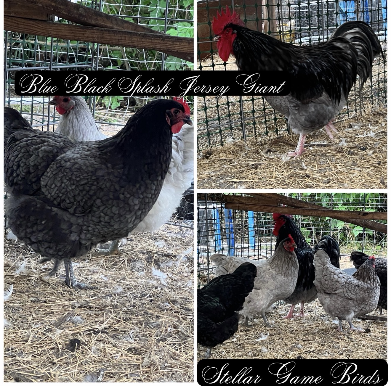 | Blue, Black, Splash Jersey Giant | 4-8 week old pullet, day old chick, hatching eggs |